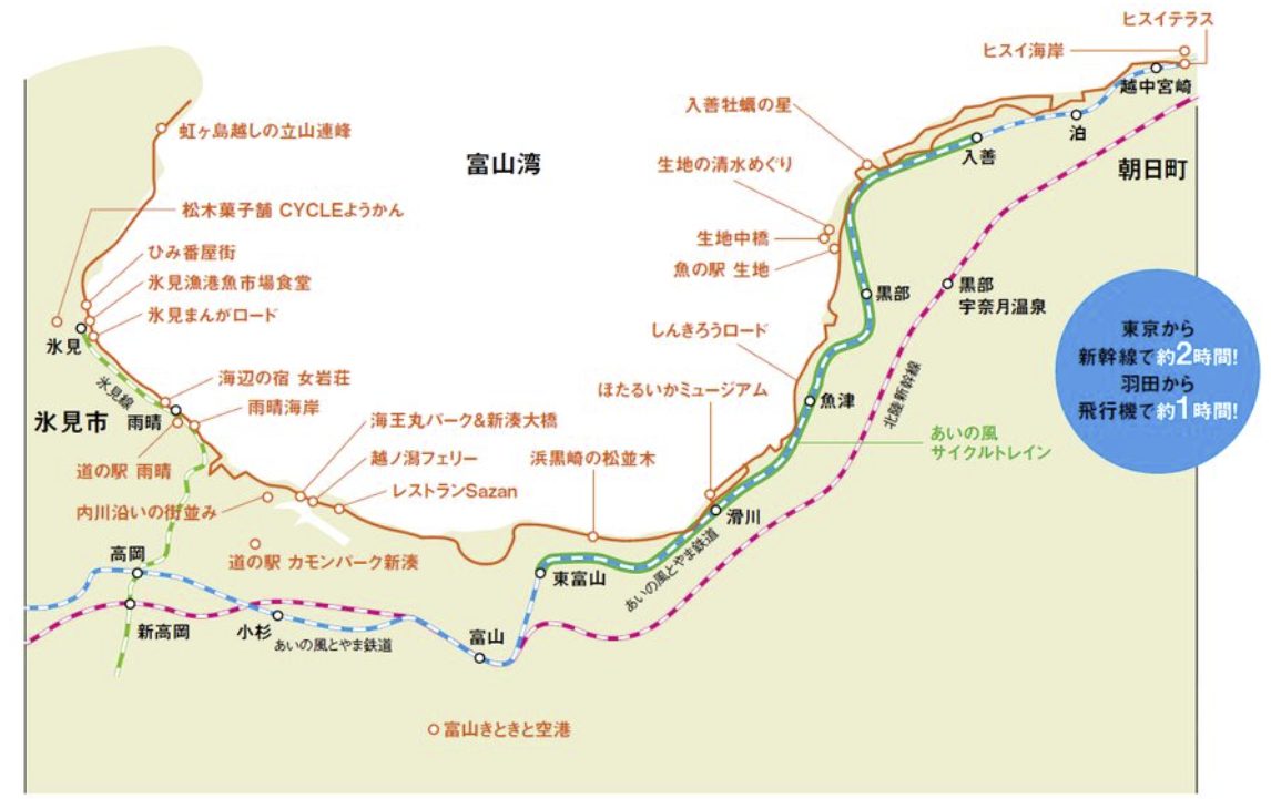 富山湾岸サイクリングコース MAP