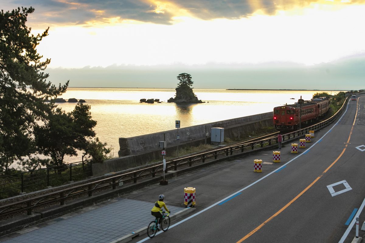 それが見られるポイントは、富山湾の西側に位置している。だからアクセスポイントの富山駅に着いたら、まずは雨晴や虻ヶ島に直行したい。そしてそこから東に向けて走るのが、富山湾岸サイクリングコースの推奨ルートだ。