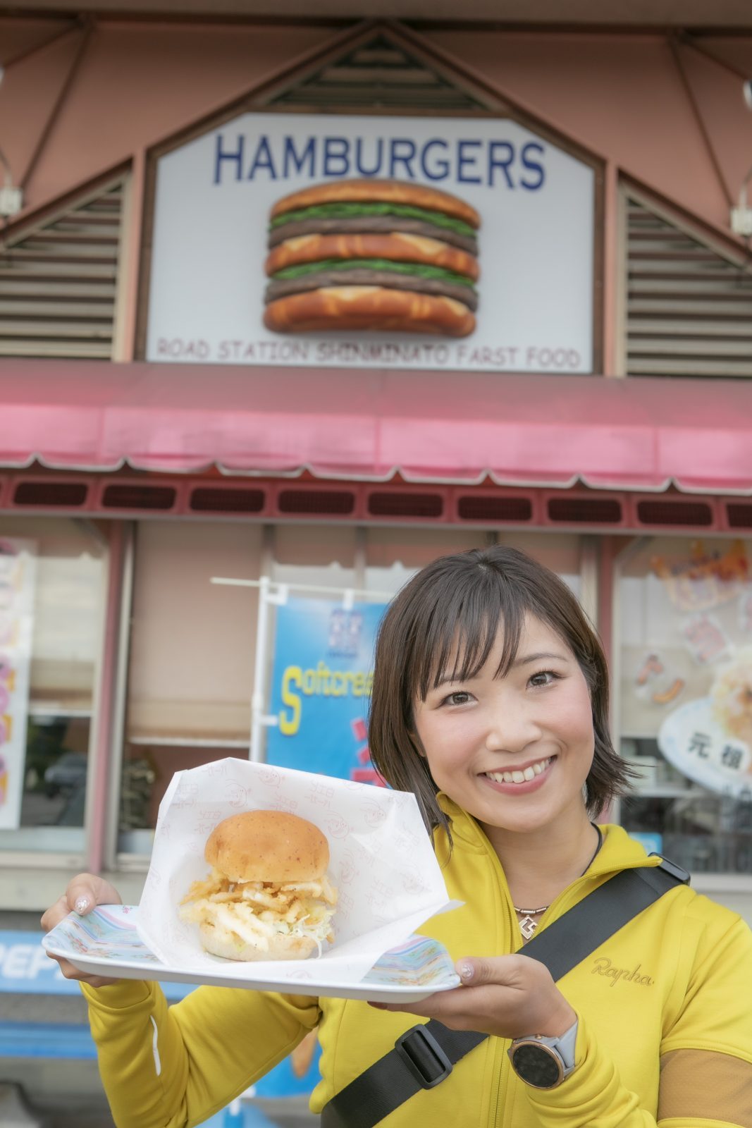 富山の名産、白エビをかき揚げにしてバンズではさんだハンバーガーが大人気。「見た目ほど重くなくてサイクリスト向き!」