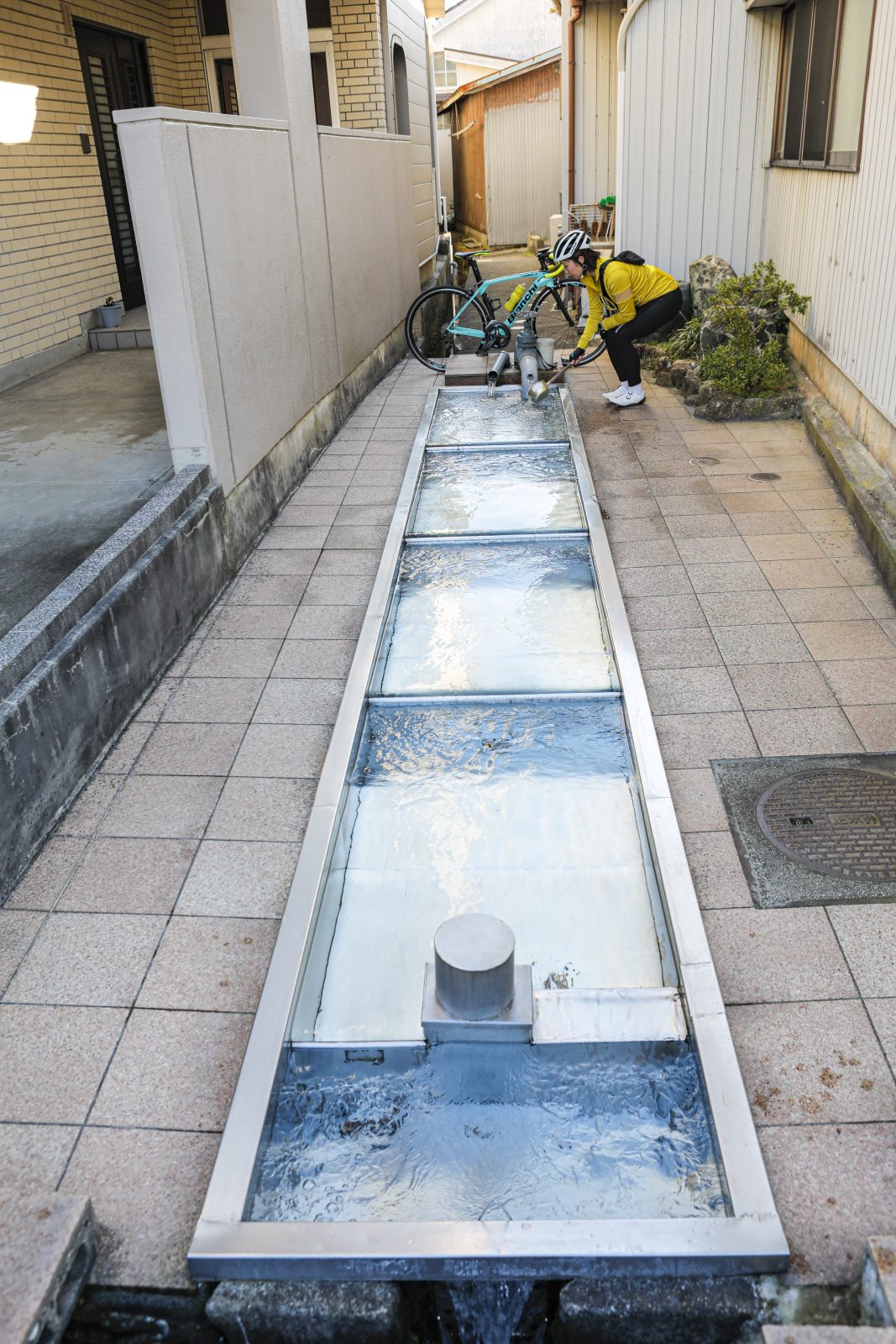 北アルプスの雪解け水が湧き出る「清水(しょうず)」。これを地元の人々は生活水として今も活用している。生地(いくじ)地区には全部で20の湧水スポットがあり、水質がそれぞれ異なる。水温は年間通じてほぼ11℃。