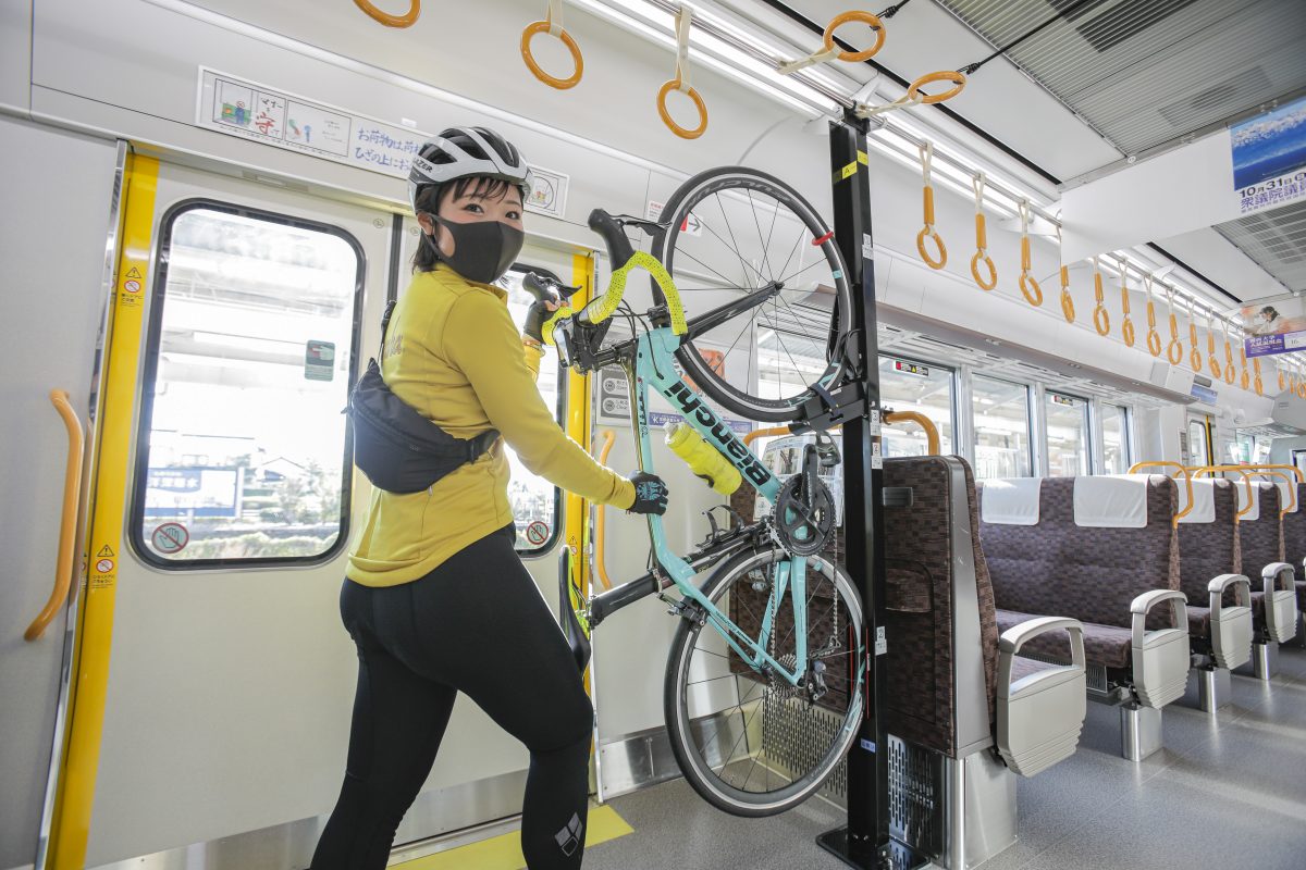 珍しい取り外し式の専用ラックを備える。4月〜11月の土日のみ運行、5日前までの予約が必要。富山湾岸沿いを運行しているので、サイクリングコースまで直行! 当日のきっぷをコース沿線のお店に見せると、割引も受けられる。乗降駅が限られるなど使うのにコツが必要だが、この列車に乗ること自体がエンターテインメントだ! 絶対乗りたい!