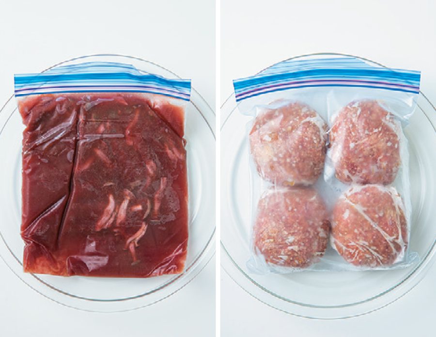 【3】別の保存袋に(B)を入れてもみ込み、【2】と同様に冷凍する。