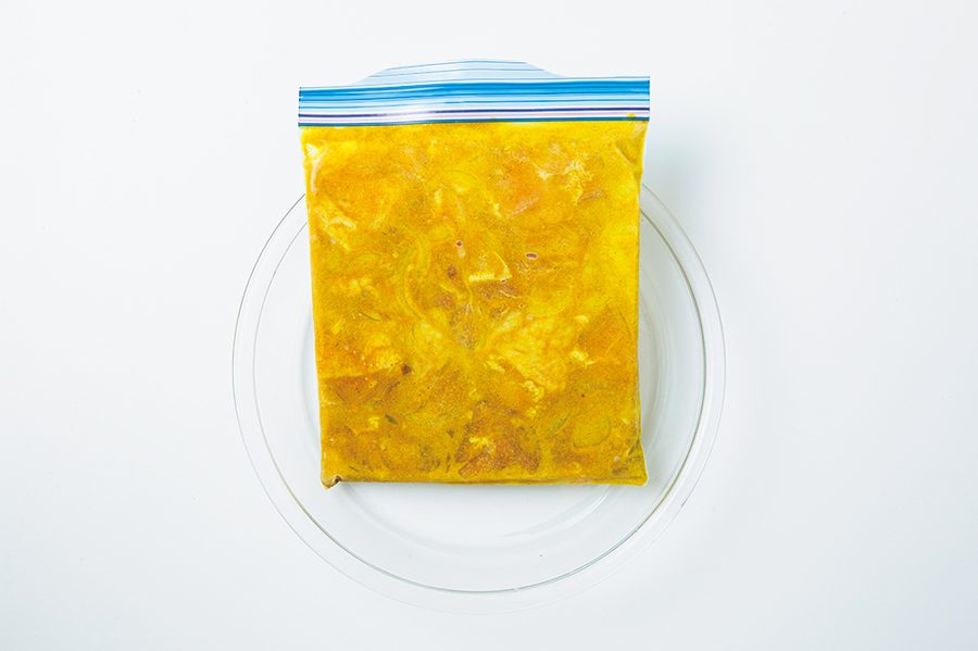 キットの調理時は材料を切ったり、炒めたりする手間もなく、調味も不要。何時間も煮込んだような絶品カレーがたちまち完成します! 鶏肉は冷凍しても味が落ちず、冷凍キット調理向きの食材。ヨーグルトやカレー粉で味をつけてストックします。ソースは別にして冷凍するのがおいしさのコツです。