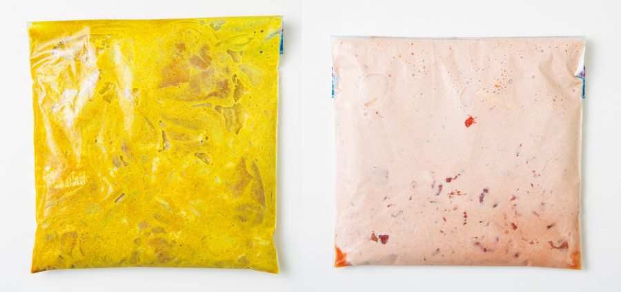 【2】別の保存袋に(B)を入れ、【1】と同様に冷凍する。