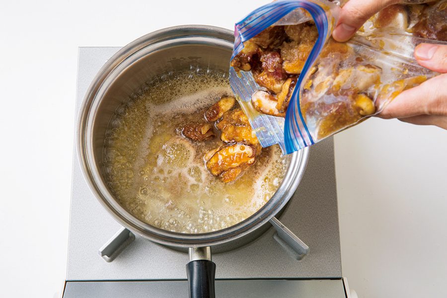 鍋に水100ml(分量外)を煮立て、【1】の中身を入れる。