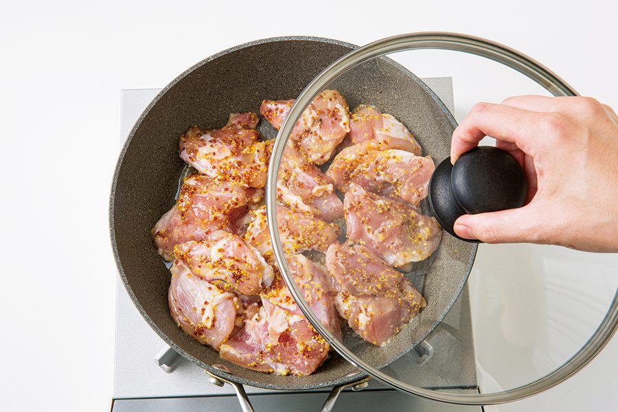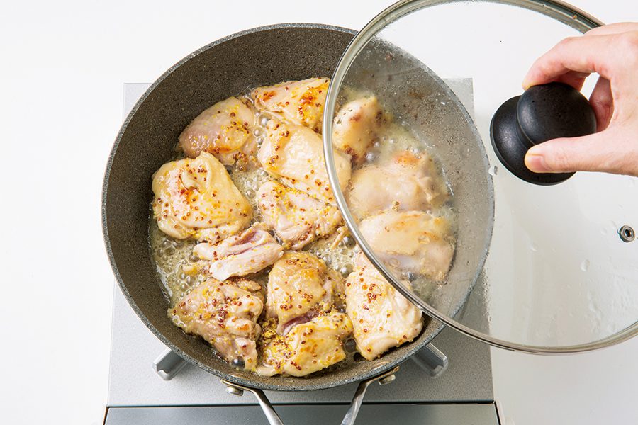 ふっくら、ジューシー。おべんとうのおかずにも! はちみつのやさしい甘さ、粒マスタードのマイルドな辛味が鶏肉のうまみを引き立てます。はちみつには肉をやわらかくする働きも。