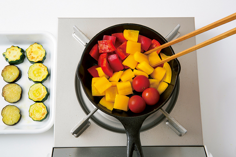 シンプルな野菜がメイン料理に!色鮮やかな「グリルサラダ」|簡単スキレットレシピ