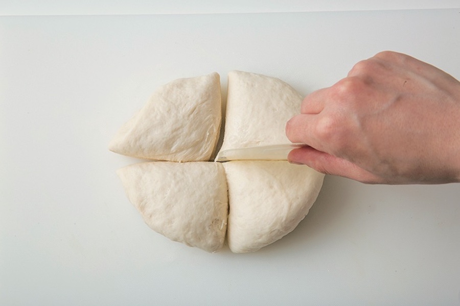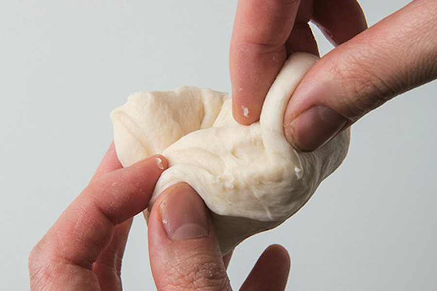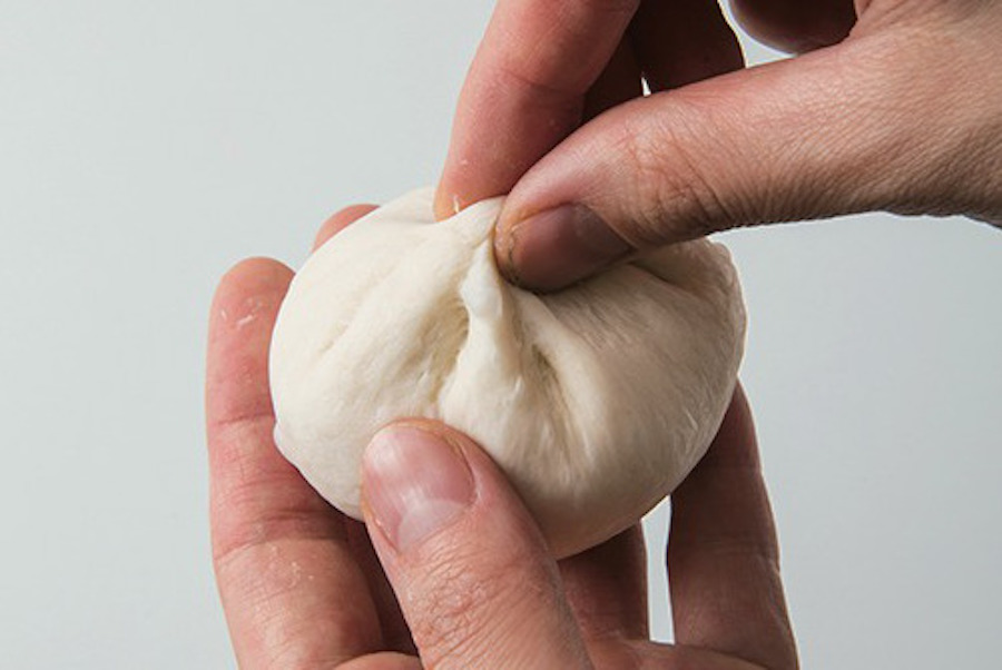 【5】切り口を内側に包み込むようにして丸め、上を絞って閉じ、丸く形を整える。