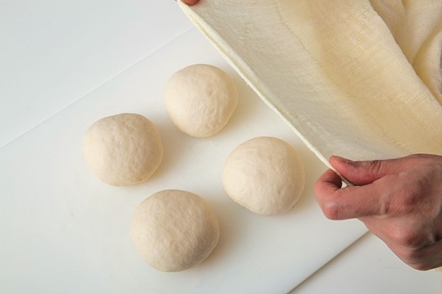 【6】閉じ目を下にして置き、かたく絞ったぬれ布ぶ巾きんをかけて室温で10分ほど休ませる。