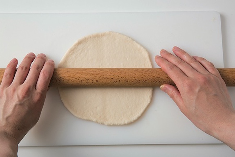 ★のばした生地は1枚ずつラップに包み、冷凍保存可能。自然解凍させてから、スキレットに敷いて焼く。