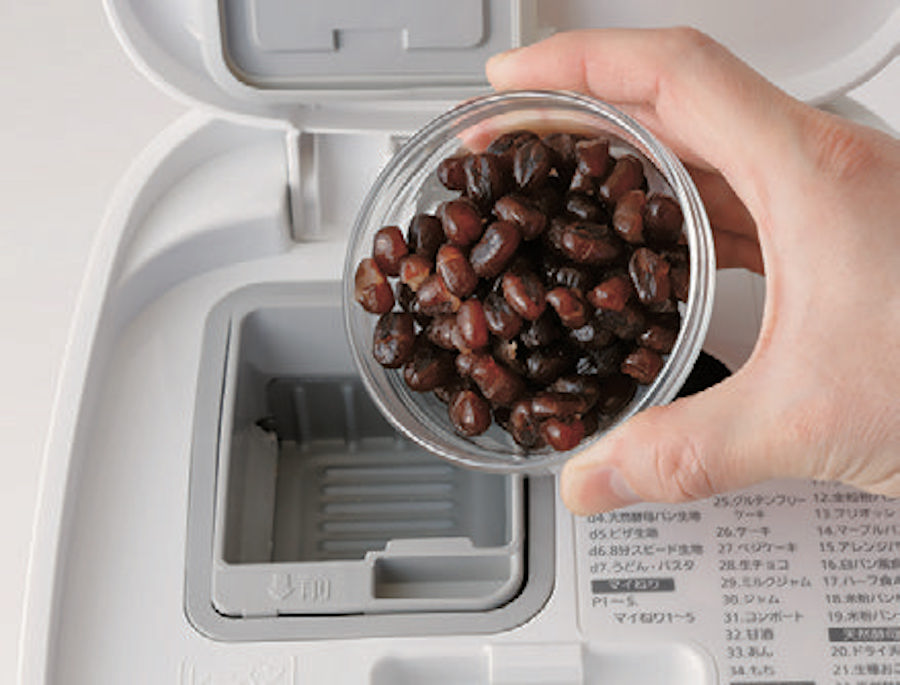大納言あずきはレーズン・ナッツ容器にセットし、粗混ぜ機能で形を残す。