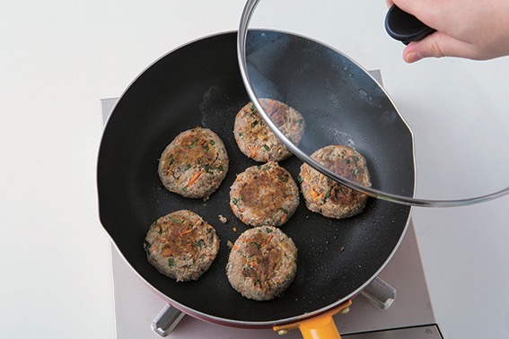 ふたをして蒸し焼きにすることで、ふっくらとした食感に仕上がる。