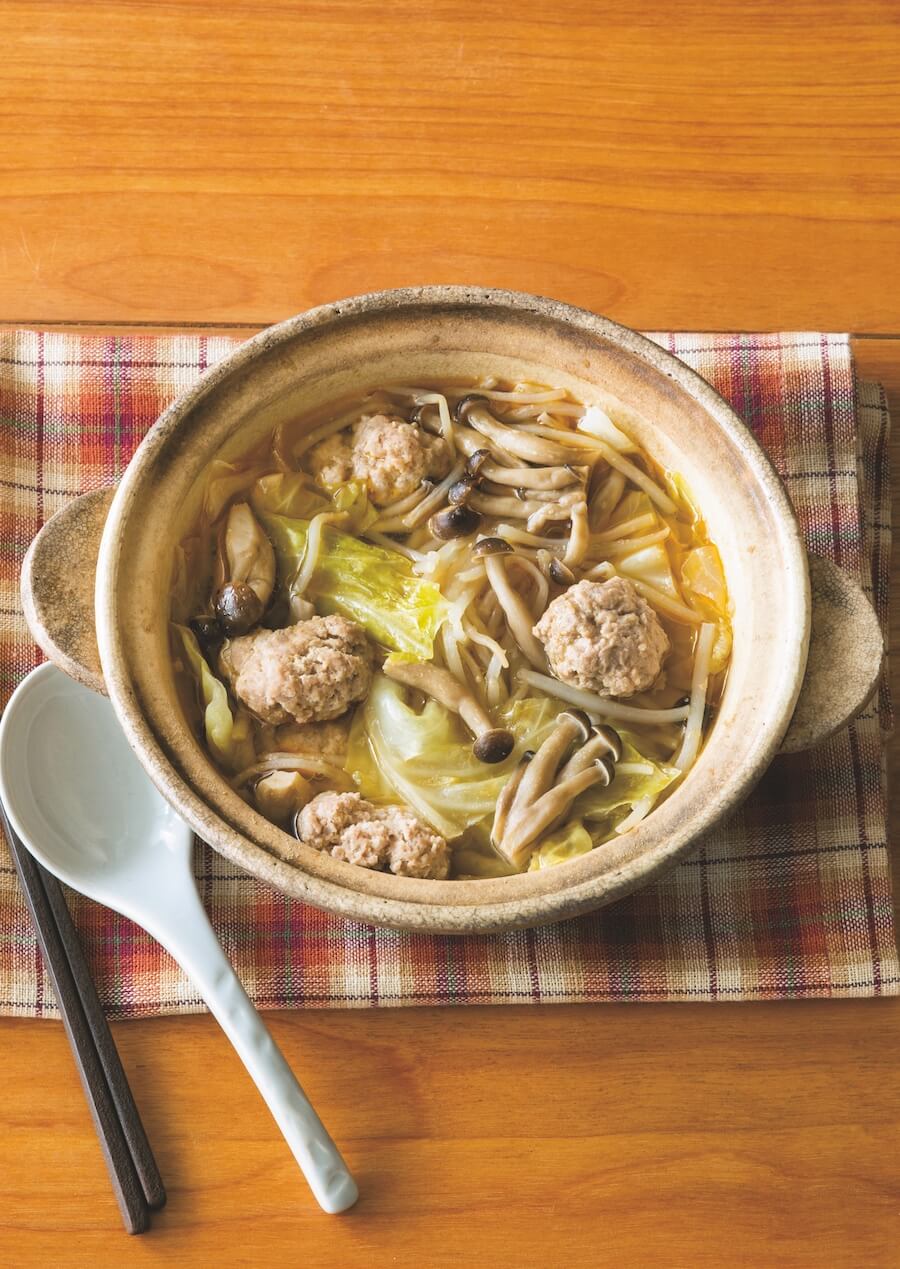 しょうがの効いた肉だねとラー油の辛みが食欲をそそる「坦坦鍋」レシピ・作り方