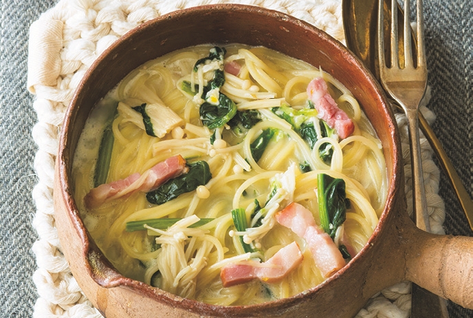 そこで今回は、牛乳入りの、さらさらとした洋風鍋「ベーコンのミルク鍋」を紹介。手軽に使えるカットベーコンから、うまみがじんわりと広がります。