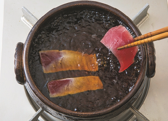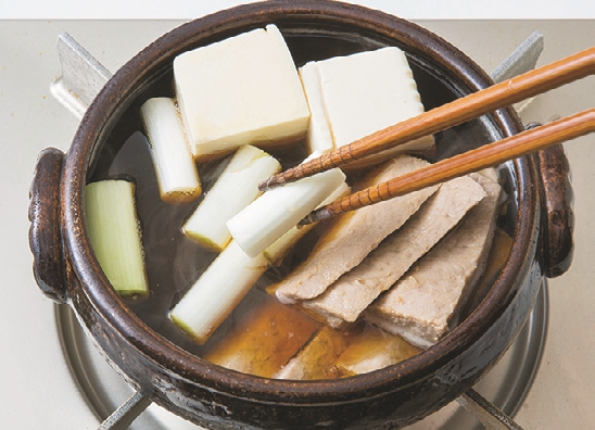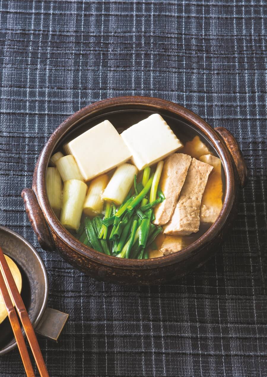 そこで今回は、まぐろとねぎで作る、しょうゆベースの小鍋「ねぎま鍋」を紹介。まぐろをシンプルに楽しめる人気の鍋です。だし汁にしょうゆ、みりん、酒を同量ずつ加え、しっかり味つけ。だし汁がしみた豆腐とねぎもごちそうです。