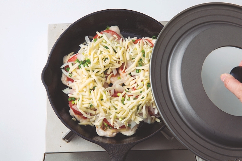 ふたをし、チーズが溶けるまで弱火から中火で3分ほど焼く。