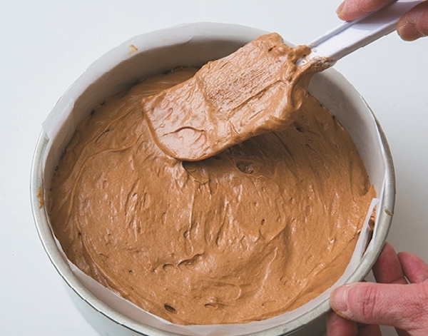 型に3を流し入れ、表面を平らにならして170℃のオーブンで約40分焼く。型のまま冷まし、ペーパーを取る。