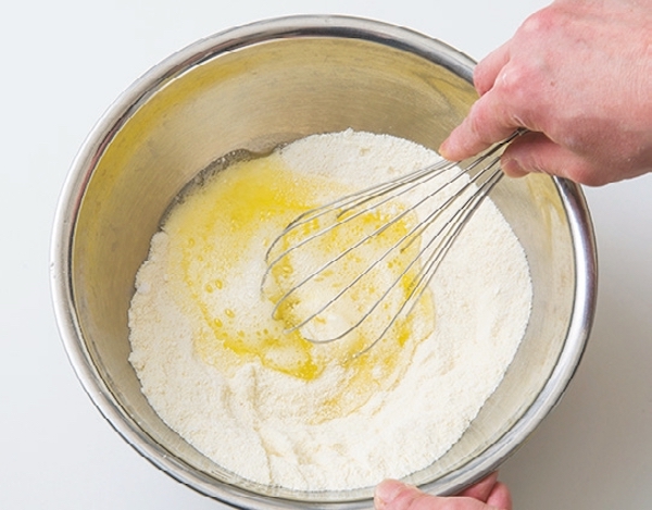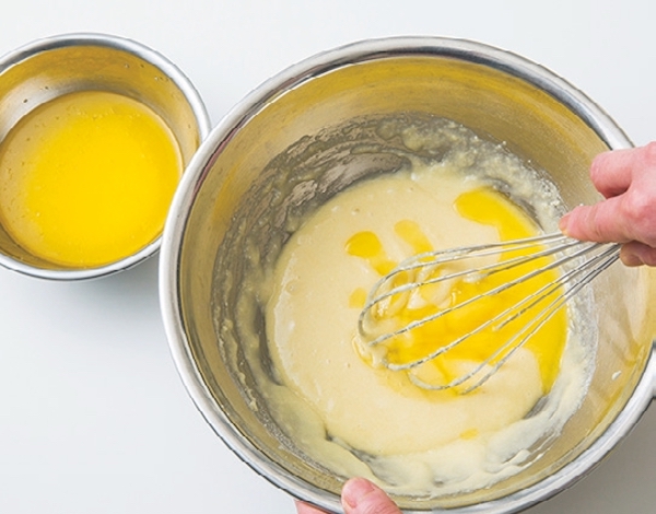 1に溶かしたバターを少しずつ加えてよく混ぜる。