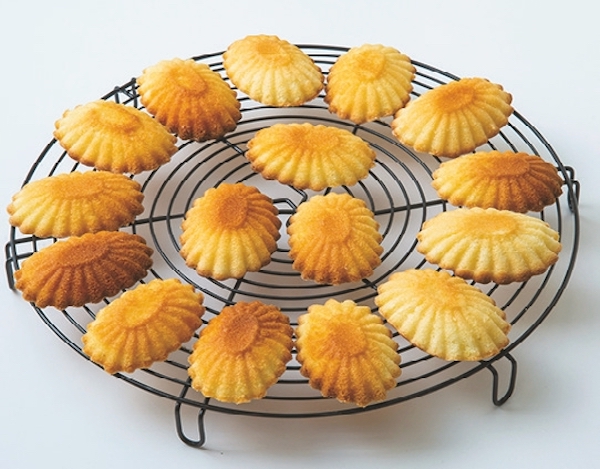 200℃のオーブンで17~18分焼き、型から出してケーキクーラーに取って冷ます。
