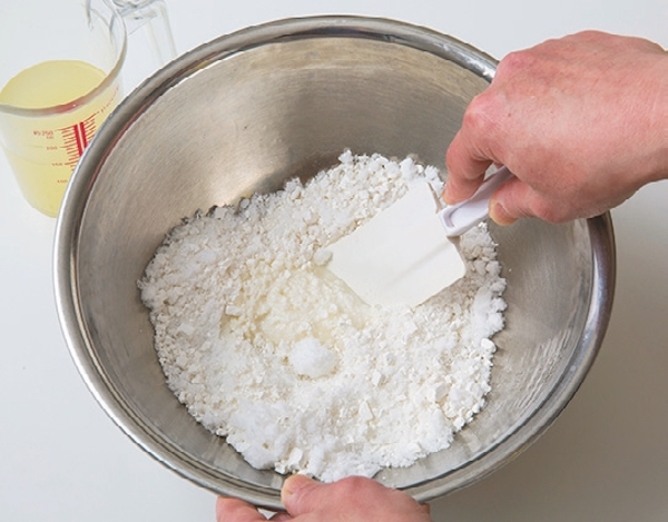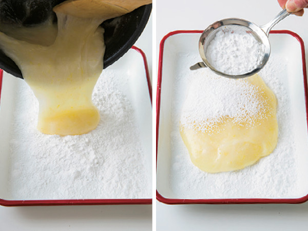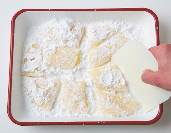 バットにコーンスターチを茶こしでたっぷりとふり、3を取り出す。生地の表面にもコーンス