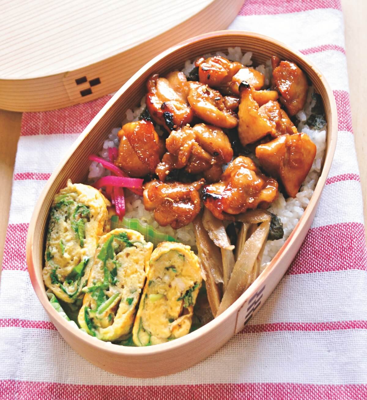 簡単に作れて見栄えがよく、何度食べても飽きがこない、ボリューム満点のお弁当レシピをご紹介します。今回は「焼きとり丼弁当」をお届け。鶏肉はお弁当のおかずによく使うので、いつも冷蔵庫に常備しています。から揚げや竜田揚げのような揚げもの以外で、ご飯が進む鶏肉おかずの代表は、やはり焼きとりではないでしょうか。たれがしみ込んだ焼きとりをご飯にのせ、丼にするのが我が家の定番です。