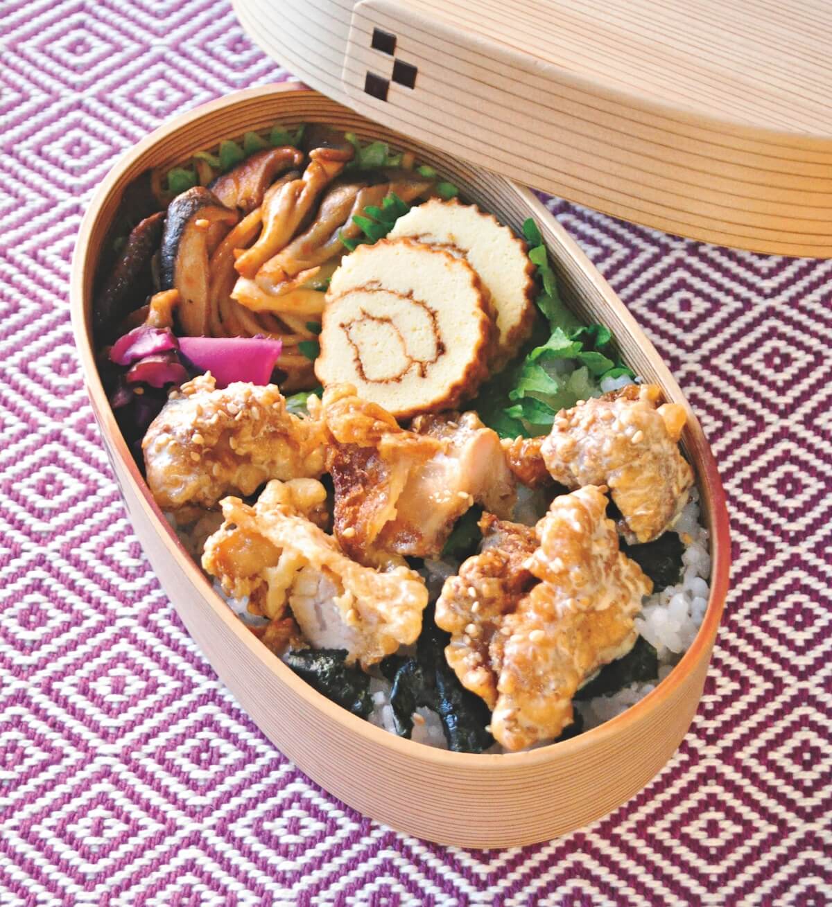 簡単に作れて見栄えがよく、何度食べても飽きがこない、ボリューム満点のお弁当レシピをご紹介します。今回は「味つきから揚げ弁当」をお届け。から揚げはそのまま入れることもありますが、冷めてもおいしく、食べやすくするために簡単な工夫をしたのが、味つきから揚げです。衣にソースがからんでいるので口あたりもよくなり、いつもとは違う味の変化があって、とても喜ばれています。
