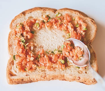 そこで今回は、刻んだサーモンと玉ねぎに、レモンの風味をまとわせた「サーモンタルタルサンド」を紹介。スプラウトはパセリやディルなど、好みのものに代えてもOKです。