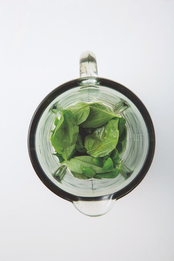 ソースは市販のバジルペーストを使ってもOK。大さじ3~4を目安にバジルペーストの塩分量によって、量を加減する。