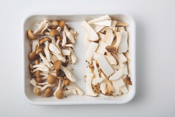 しめじは石づきを落とし、小房に分ける。エリンギは食べやすい大きさに切る。