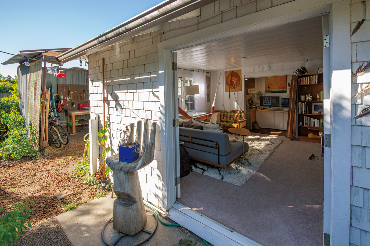 アレックスが使う素材は、全て持続可能なリサイクルが出来るマテリアルで、主に壊された建築物の廃材を再利用する。サーファーのためのプロジェクトも進めていて、彼が作ったタイニーハウスは外の壁にロングボードを何本も収納できるサーフラックが組み込まれ、そしてトレーラータイプなのでどこにでも引っぱっていける。