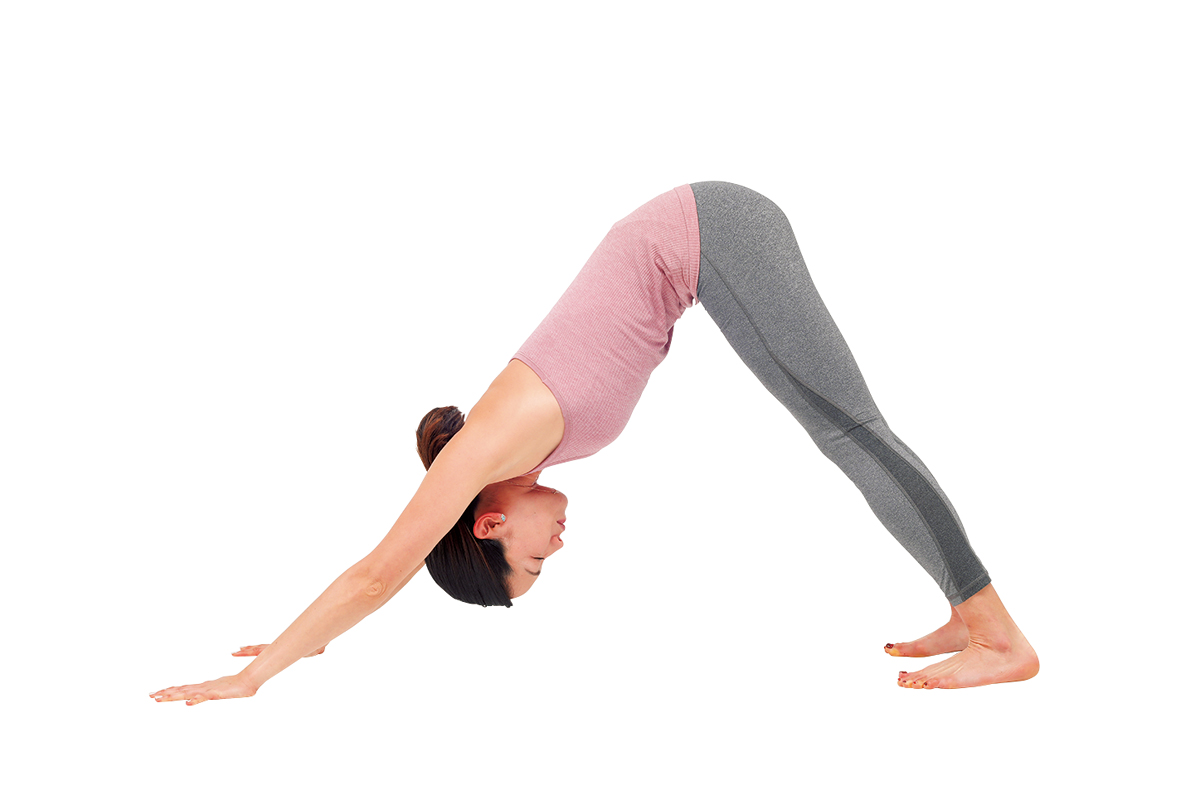 ヨガの基本ポーズであるダウンドッグは、パドルで肩周りが硬くなっているサーファーにはなかなか辛いポーズ。肩と腿の柔軟性が高まると、楽になってくるはず!