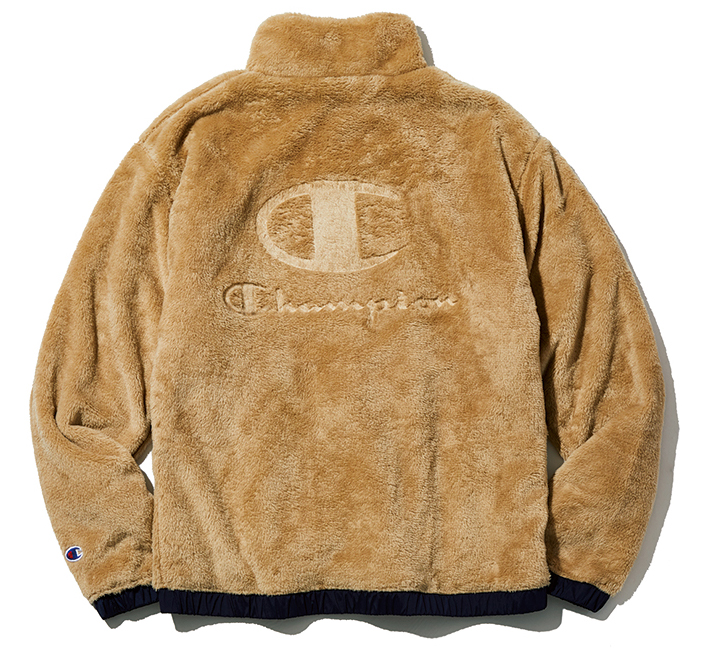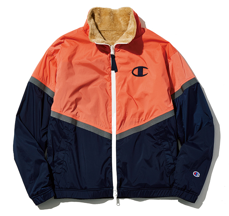 ストレッチ性のあるナイロン素材とフリース素材を、表裏で使用したリバーシブルがポイント。フリースの背面には型押しロゴが。ジャケット18,480円(チャンピオンゴルフ)