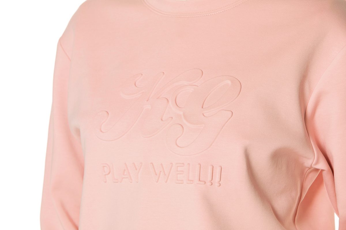 シンプルな無地のボディに、エンボス加工による凹凸で「KGロゴ」をデザイン。厚めの素材感は着心地も抜群。トレンドのペールトーンは秋にも!