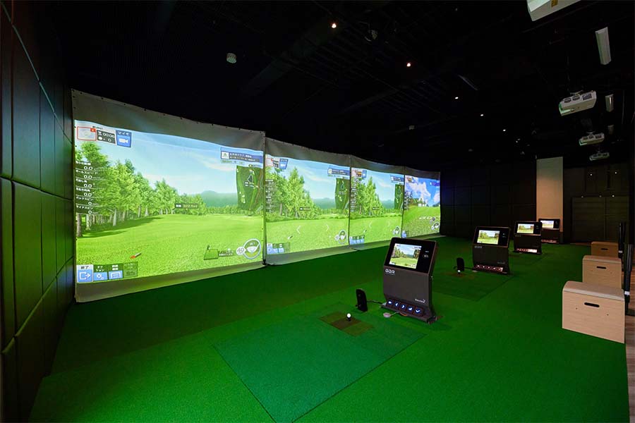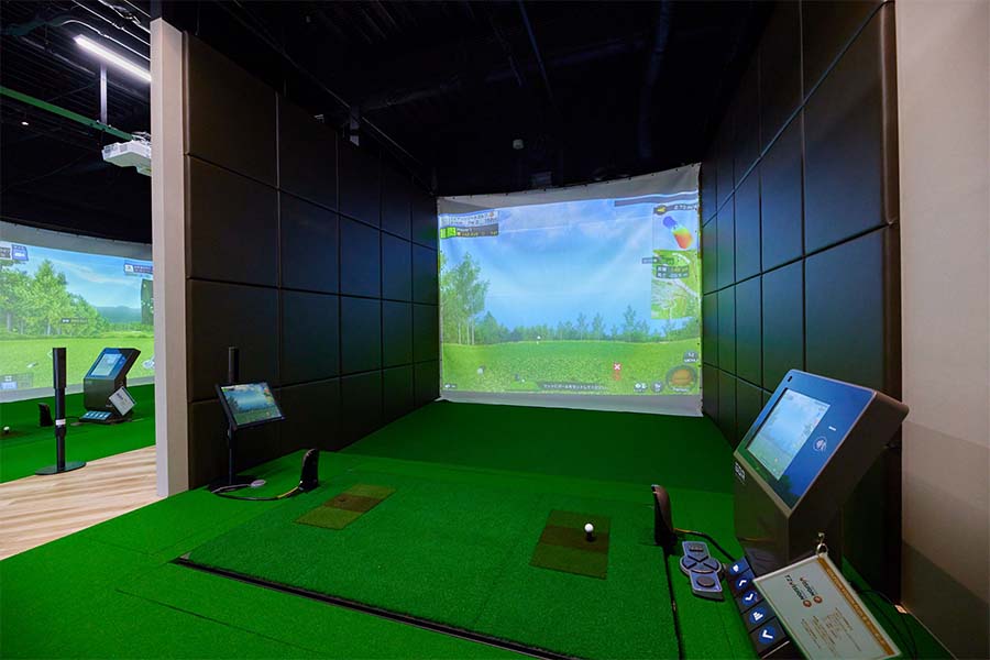 全打席にシミュレーション機器を完備。大画面のスクリーン上にゴルフ場の臨場感あふれるビジュアルで、本格的なラウンド体験ができちゃいます。