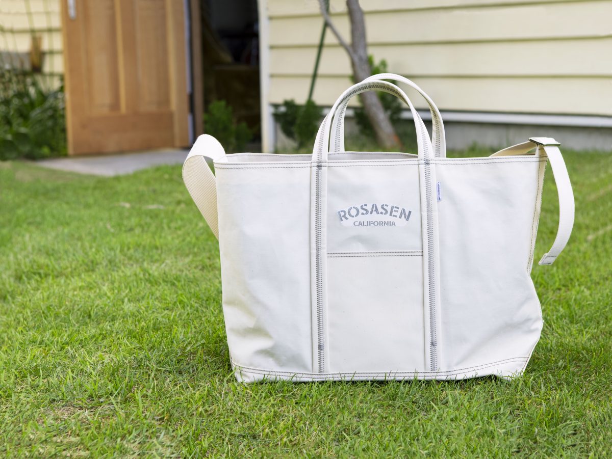 まずは、オーガニックコットンを使用した『ビッグトート』(20,900円)からご紹介。「ロサーセン」はこれまでにも土に還るポロシャツや車のエアバッグをリサイクルした雑貨などを多数リリースしていますが、こちらのトートも「子供たちのためにも持続可能な地球にやさしいモノづくりを」の願いを込めて、オーガニックコットンを使用したサステナブルなアイテムとなっています。