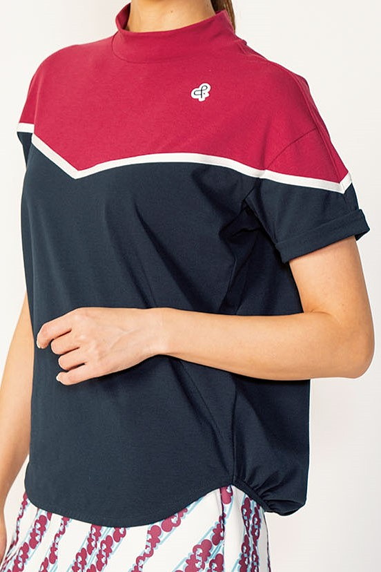 バイカラーのフリル袖が特徴のモックネックシャツは、洗練されたスタイリングを得意とするアンパスィらしいデザイン。動きのあるプリーツスカートと合わせて、よりフェミニンなスタイリングに。バイザー:4,950円、モックネックシャツ:17,600円、スカート:17,600円、ソックス:2,200円、ボールケース:4,400円(すべてアンパスィ)、その他スタイリスト私物。