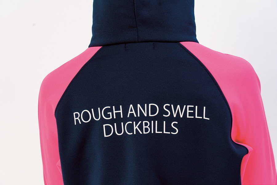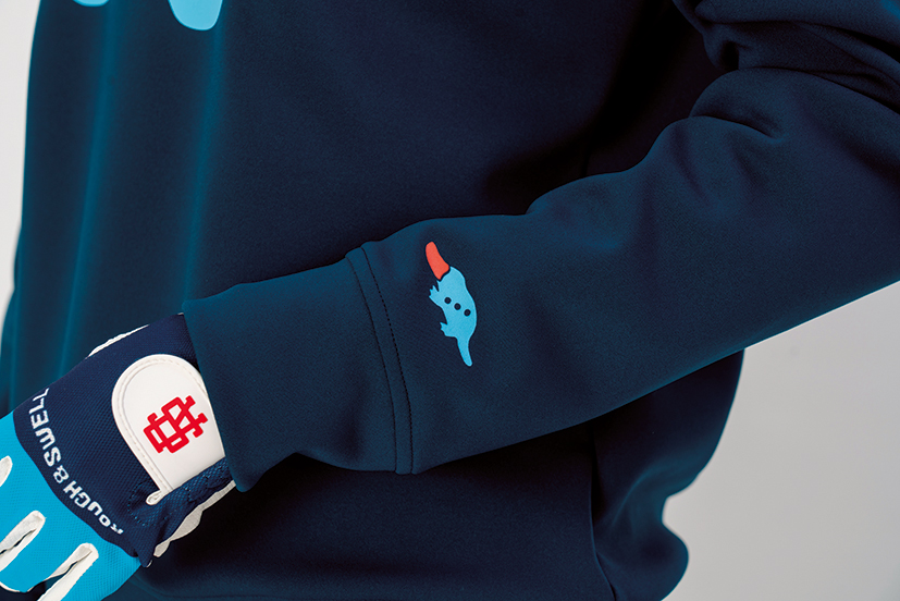 トップスの袖口には、おなじみのアイコンであるカモノハシプリントが、さりげなく存在感を発揮。細部にまで遊び心を忘れない仕上がりに 。