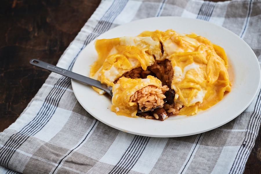 甘辛いタレが色々な食材と合う、焼きとり缶。コンビニでも手軽に買えるので、山ごはんの強〜い味方。タレごと使用することで簡単に味が決まるので、ほかの調味料が最小限で済むのもうれしいですね!今回はチキンライスに追いチキンをして“みんな大好き半熟系オムライス”を作ってみましょう。山頂で熱々をほおばれば、口福(こうふく)まちがいなしです。