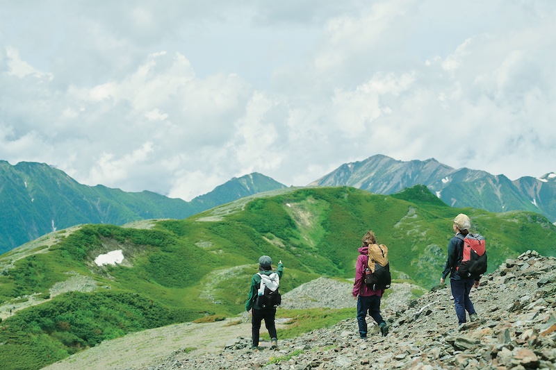里から眺めるとなだらかで優しい印象の山容だが、どの登山口からも日帰りではアクセスしにくいロングコース。そのぶん、深い樹林帯と急登を抜けて広い稜線に出たときの開放感と達成感は何ともいえない。上りの疲れが一気に吹き飛ぶほどの槍・穂高連峰の絶景は何よりのご褒美!蝶ヶ岳ヒュッテに一泊してのんびりと山時間を楽しむのがおすすめ。