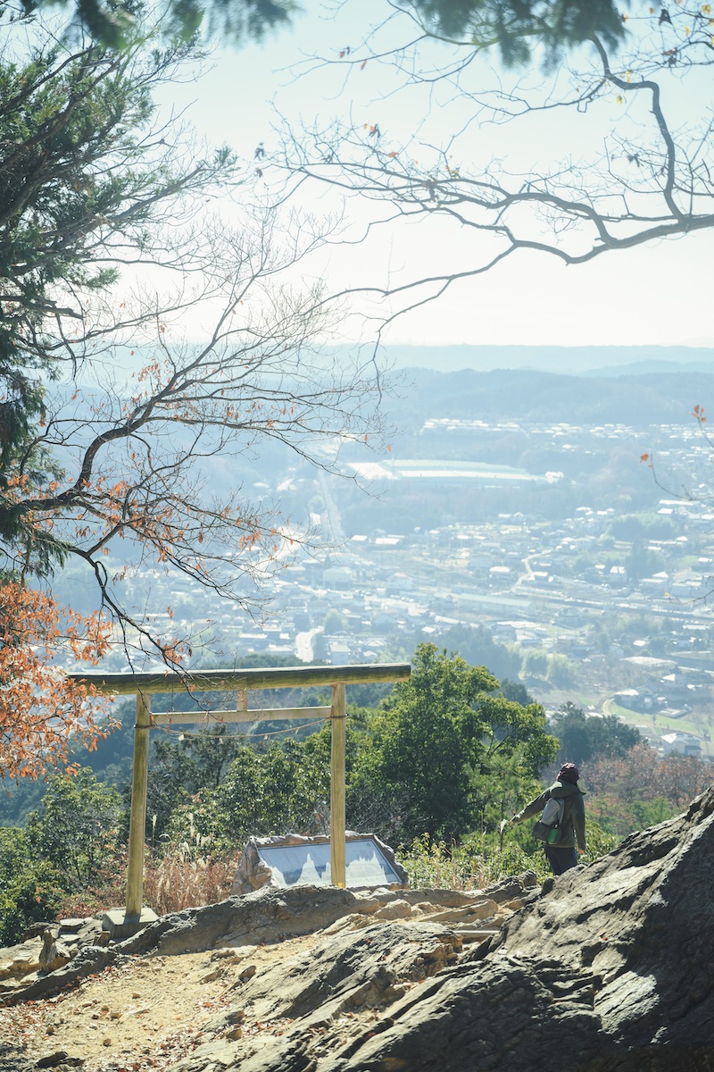 登山口からいきなり急坂がはじまるが、登り切ると大きな鳥居がどーんと鎮座する森のなかに入っていく。その先に、分岐点。男坂と女坂に分かれており、達成感を味わいたいときは迷わず男坂へ!ゴツゴツとした岩場が現れ、両腕、両脚をしっかり使って「うんしょ、うんしょ」とよじ登る。「なだらかな女坂を選べばよかった……」って思いが一瞬頭をよぎるかもしれないが、大丈夫!