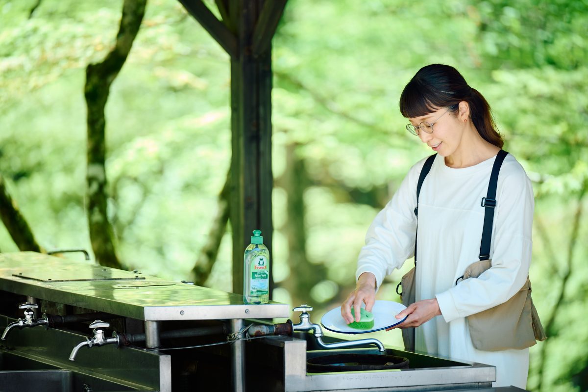 自然にやさしいフロッシュ®は、アウトドアの場面でも大活躍!豊かな自然広がる場所で楽しむキャンプでは、水に流すものには気を配ったり、フィールドを汚さないことを意識したいですよね。キャンプごはんを楽しんだあとの食器や調理道具の片づけの際には、環境に配慮された洗剤を使って自然にやさしいキャンプを楽しみませんか?キッチンペーパーなどで汚れをふき取ってから洗ったり、つけ置き洗いをすれば水や洗剤の使用量を抑えられるので、さらにGOOD!