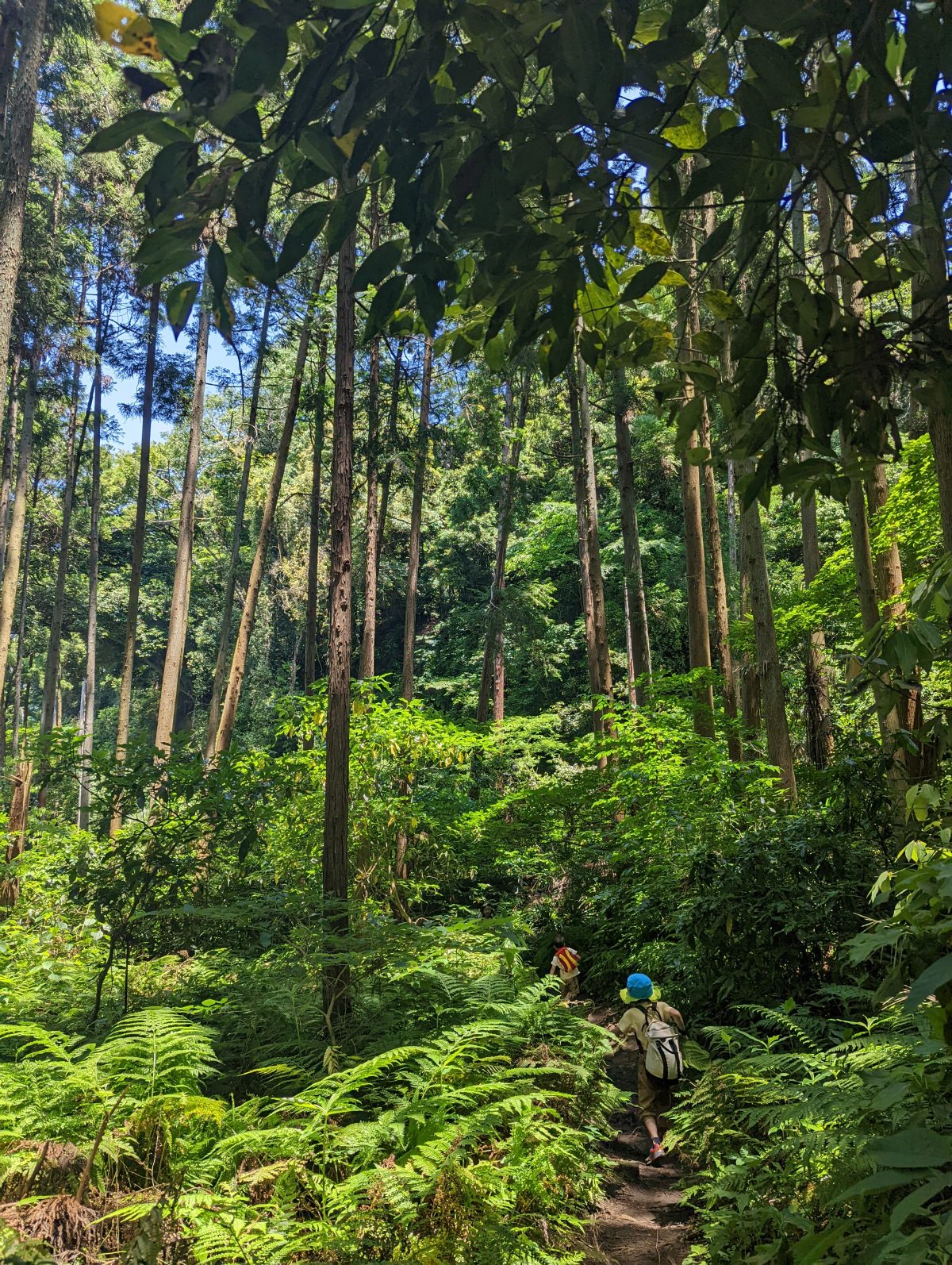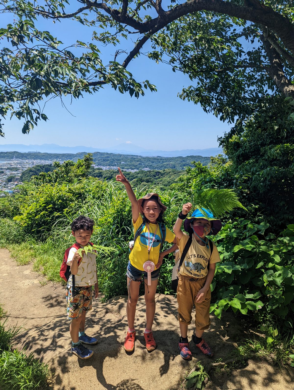 いくつもの鳥の声が響いていて、まるで恐竜時代にタイムスリップしたような雰囲気に、子どもたちは自然と探検隊となり、意気揚々と登って行きました。
