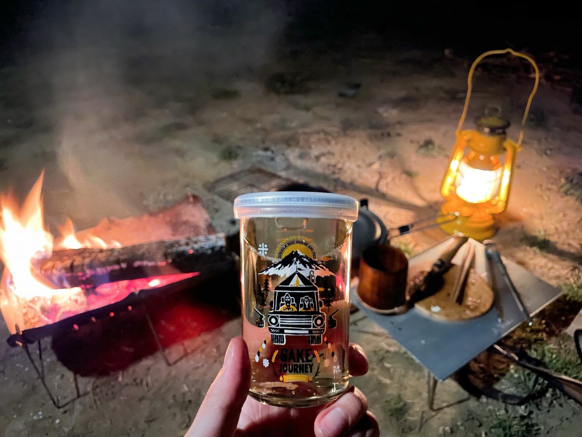 夜になり、さらに寒くなってきたので、ビールから熱燗に移行。手に持った火バサミで常に焚き火を触りながら、昔のことを思い出したり、次のアイデアがふと浮かんだり、何も考えていなかったり、とにかくこの時間のためにキャンプに来ていると言っても過言ではない。