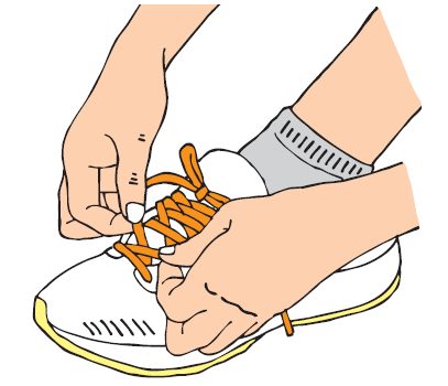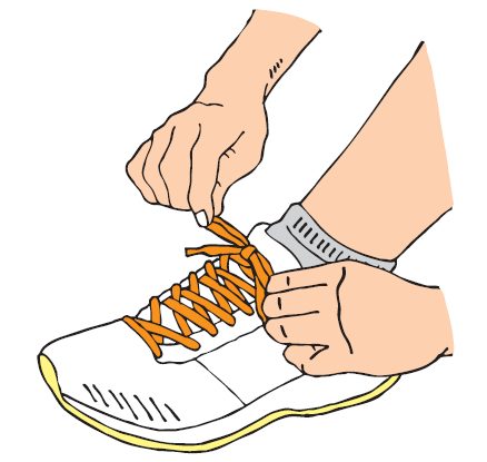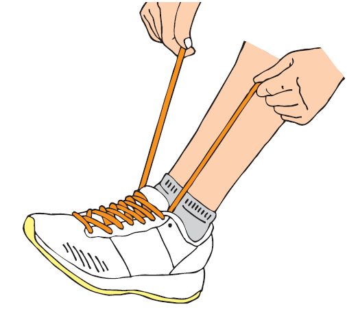シューレースが緩まないように蝶結びをします。足首部分が窮屈になりすぎないように、足首を少し前に倒して結びましょう。