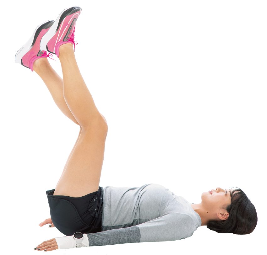 両脚を軽く開いて真上に上げ、その状態のまま脚をブラブラと30秒ゆする。