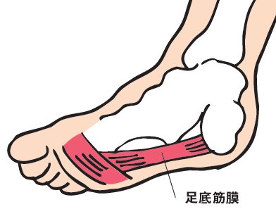 カカトの裏側の骨から足指の根元まで伸びている足底筋膜がランニングなどにより繰り返し引っ張られることで炎症を起こし、カカトの前などに痛みを感じるようになる障害です。日頃から、足裏の筋肉と足首の動きをよくしておくことで発症を防ぐことができます。