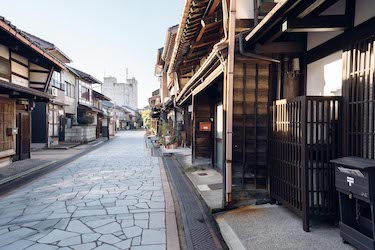 次のスポットは富山が誇る国宝「瑞龍寺」。大寺幸八郎商店から向かう道すがら、商人町として栄えた「山町筋」の街並みも楽しみつつ向かいます。