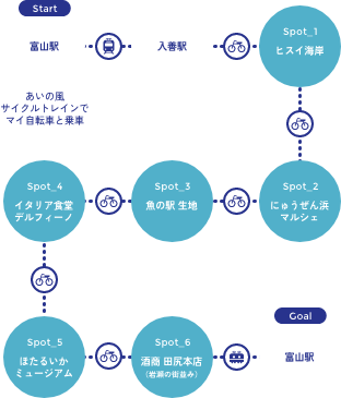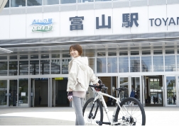 サイクリストのためのルートや設備が整う富山では、週末限定でサイクルトレインが運行(土日のみ)。サイクリングと一緒にローカル電車の旅も楽しめるのがこのコースの魅力の一つ。