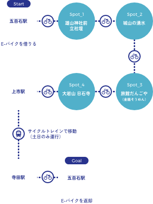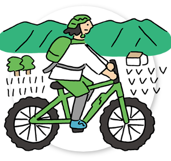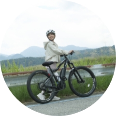 山道でのライディングも楽しめるこのコースは、E-バイクで挑むのが正解。五百石駅の観光案内所では、E-バイクのレンタルが可能。女性も安心してヒルクライムに挑戦できる。
