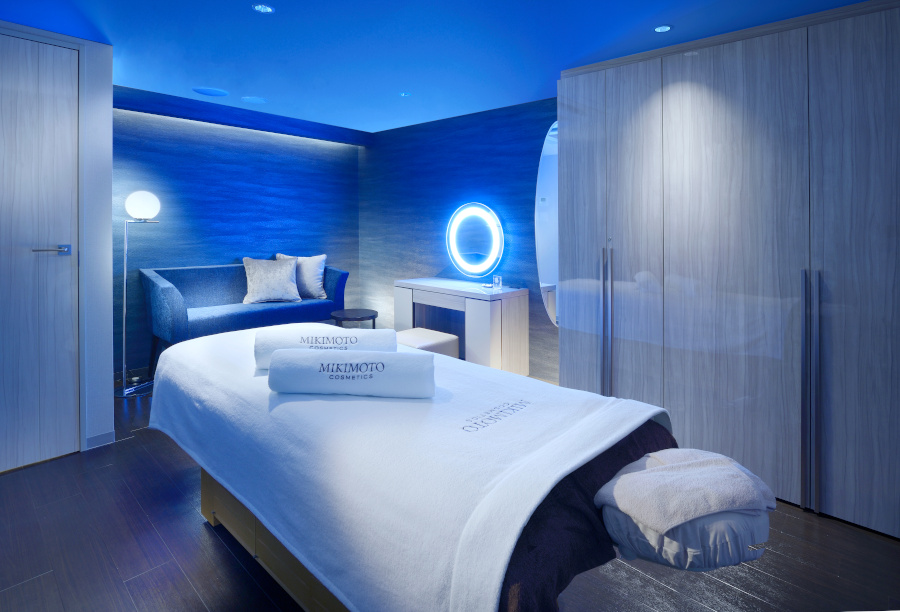 女性のパウダールームと浴室にはそれぞれMIKIMOTO COSMETICSのスキンケアとインバスアメニティが常備してあり自由に使用できます。頭から足先まで全身がパールエキスのベールに包まれます。